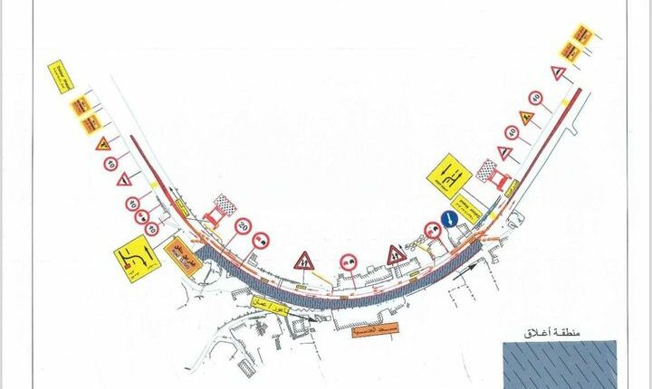 إغلاق طريق العدسية ناعور صعوداً لأعمال الصيانة وتحويل المسرب المقابل ليصبح صعوداً ونزولاً