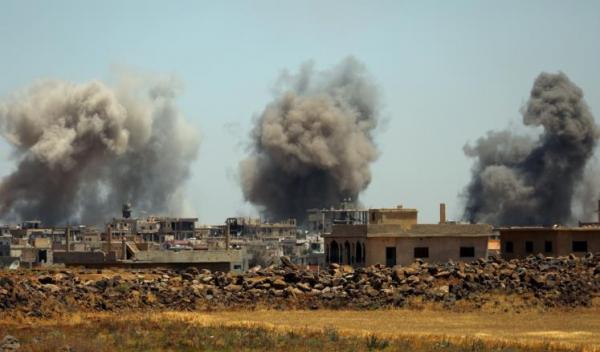 وتواصل قوات النظام السوري مدعومة بالطيران الروسي قصفها العنيف لمناطق حوض اليرموك الخاضعة لسيطرة تنظيم داعش الإرهابي في محاولهم منهم لإخضاع تلك البلدات لسيطرتها. (الغد)
