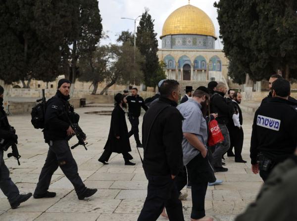 ونفذ المستوطنون جولات استفزازية في أرجاء المسجد الاقصى قبل أن يغادروه من باب السلسلة وسط حالة من الغضب والغليان سادت بين المصلين والمرابطين في باحات الحرم القدسي الشريف . (بترا)