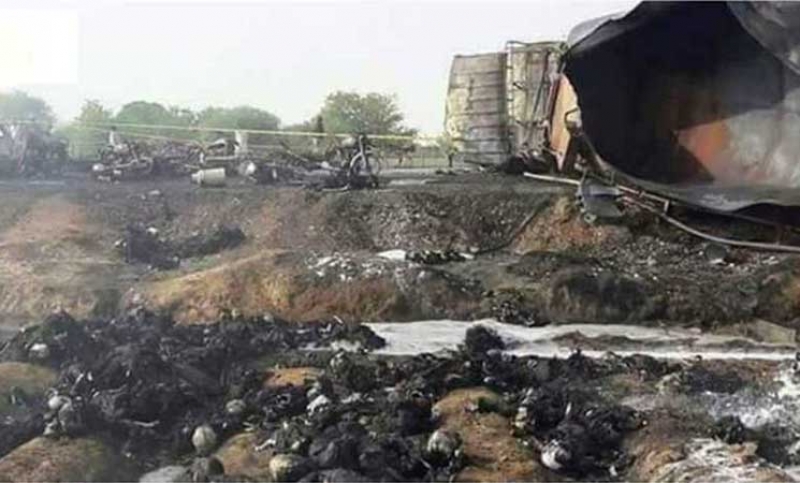 وقال المسؤول في السلطات المحلية رانا محمد سليم افضل للتلفزيون الحكومي ان “123 شخصا على الاقل قتلوا واكثر من مئة آخرين اصيبوا بجروح في حريق اندلع عندما انقلبت شاحنة صهريج وهرع الضحايا لجمع المحروقات” عن الطريق.