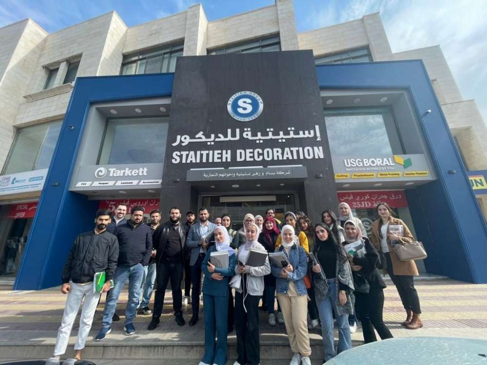 نظم قسم التصميم الداخلي في كلية العمارة والتصميم/ جامعة عمّان الأهلية مؤخراً رحلة علمية إلى شركة استيتية للتصميم الداخلي في عمان، للاطلاع على آخر المستجدات في عالم الأرضيات والقواطع الداخلية.