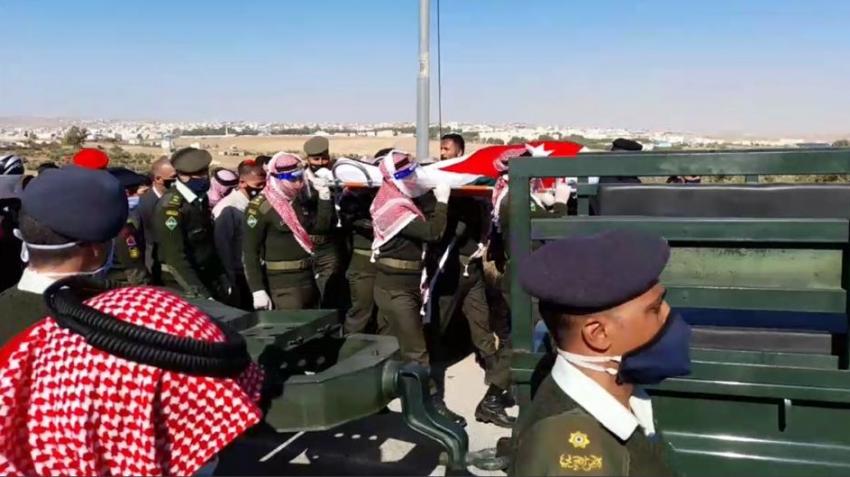 وجرات مراسم عسكرية رسمية لدى وصول الجنازة الى مقبرة العشيرة في نحافظة الكرك.