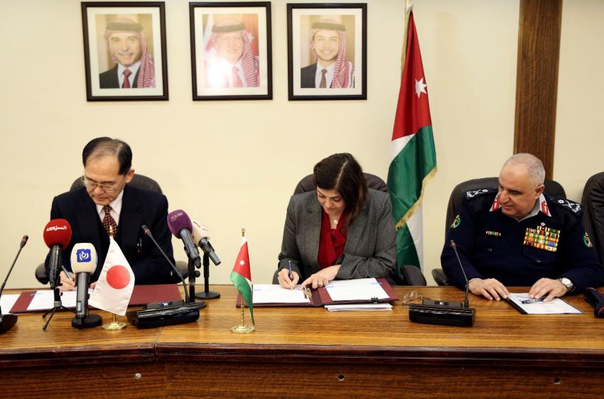 ووقع الاتفاقية نيابة عن الحكومة الأردنية وزيرة التخطيط والتعاون الدولي الدكتورة ماري قعوار، وعن الحكومة اليابانية السفير الياباني في عمان السيد هيديناو ياناجي Hidenao Yanagi، والمدير العام للمديرية العامة للدفاع المدني اللواء مصطفى عبدربه البزايعة، وبحضور عدد من المسؤولين من السفارة اليابانية في عمان.