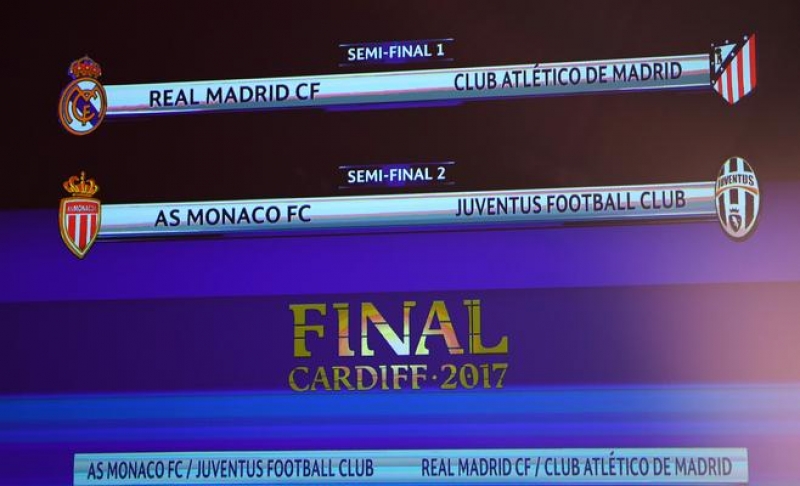 وتقام مباراتا ذهاب نصف النهائي على ملعبي ريال وموناكو في الثاني والثالث من ايار(مايو)، قبل أن يحتضن اتلتيكو ويوفنتوس الإياب في 9 و10 منه. (أ ف ب)
