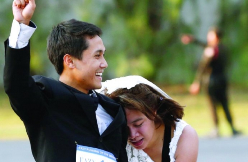 شارك 250 زوجاً من الشبان والفتيات المقبلين على الزواج في مسابقة عدو لمسافة أربعة كيلومترات ، للفوز بالجائزة الكبرى التي تقدر بنحو 28 ألف دولار لتغطية تكلفة الزواج.